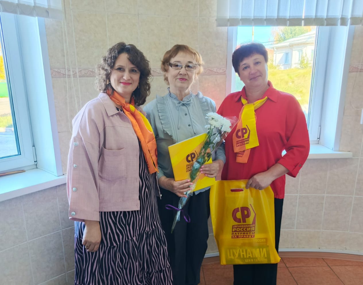 Представители местного отделения Социалистической партии "СПРАВЕДЛИВАЯ РОССИЯ – ПАТРИОТЫ – ЗА ПРАВДУ" в Мариинском муниципальном округе совместно с председателем отделения Мариной Трепп провели акцию "Учитель! Твой труд бесценен...". В рамках этой акции члены партии выразили благодарность и признательность ветеранам педагогического труда за их неоценимый вклад в образование, воспитание молодого поколения и поздравили их с Днем учителя.
