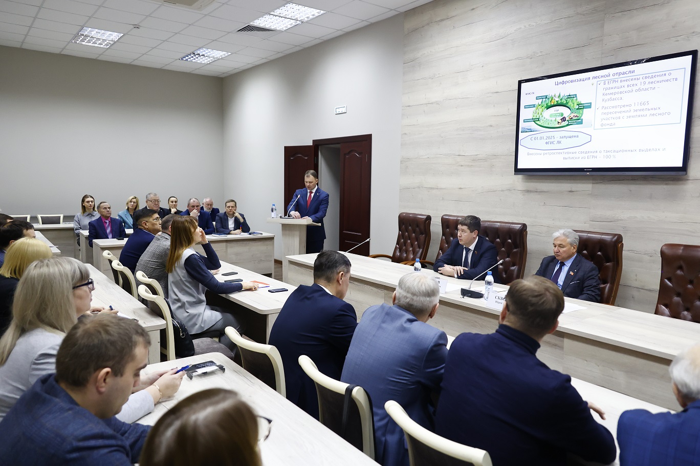 С информацией о результатах работы своих ведомств в 2025 году выступили министр природных ресурсов и экологии Кузбасса Олег Ивлев, исполняющий обязанности министра лесного комплекса и охотничьего хозяйства Кузбасса Евгений Бойко и первый заместитель министра сельского хозяйства Кузбасса Ирина Караева.
