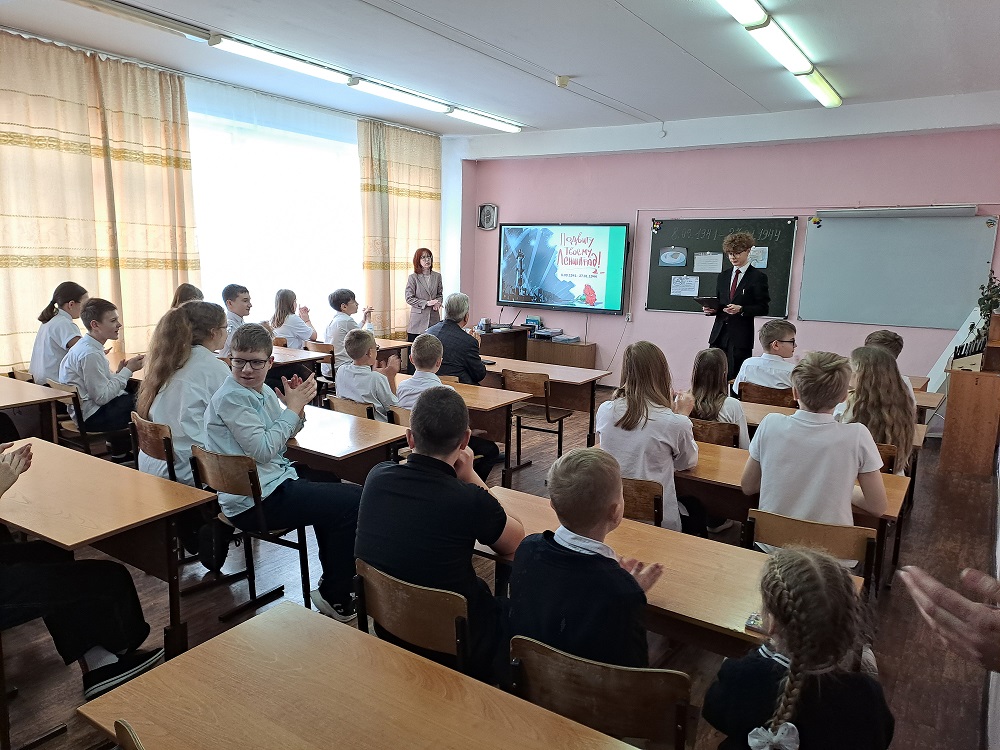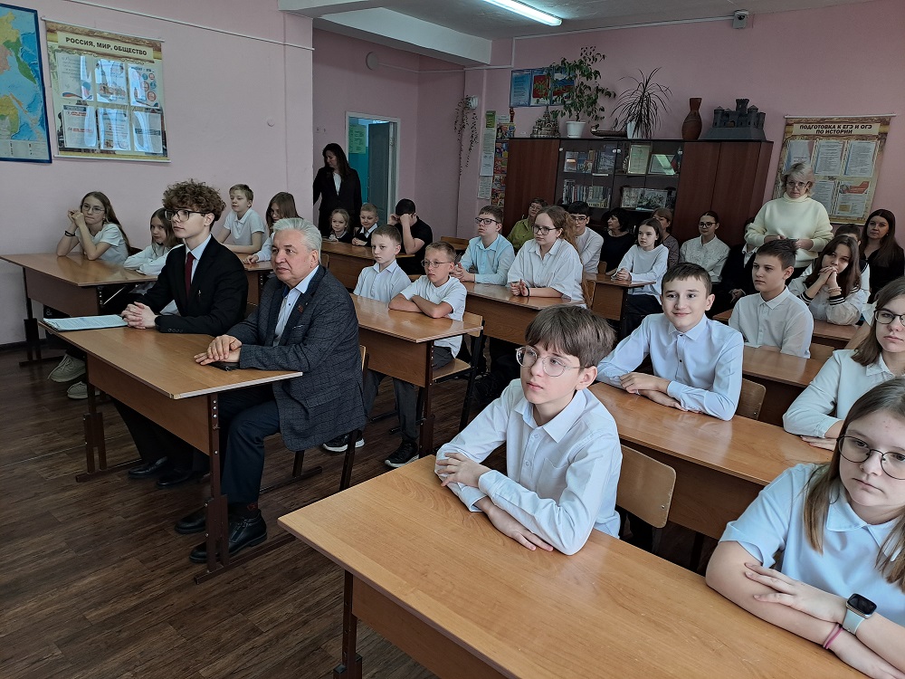 В Ясногорской школе Кемеровского муниципального округа состоялся патриотический урок памяти "Непокоренные", посвященный Дню полного освобождения Ленинграда от фашистской блокады. В мероприятии принял участие заместитель председателя Парламента Кузбасса, председатель регионального отделения партии СПРАВЕДЛИВАЯ РОССИЯ в Кемеровской области Юрий Скворцов.