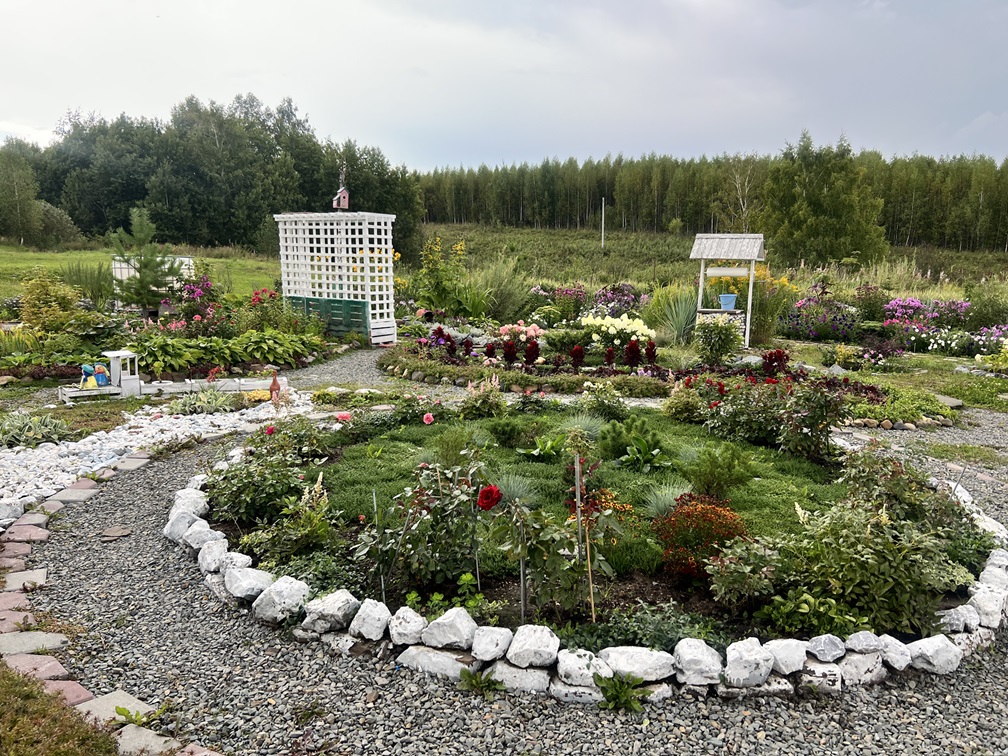 Сегодня в "Нескучном саду" можно увидеть 16 обложенных камнями клумб, где растут более 100 видов растений, дорожки из щебня, беседку и декоративный колодец. Розы, пионы, лилии, гортензии и многие другие цветы радуют глаз и создают умиротворенную атмосферу. Это место стало настоящим укрытием для тех, кто ценит красоту природы.