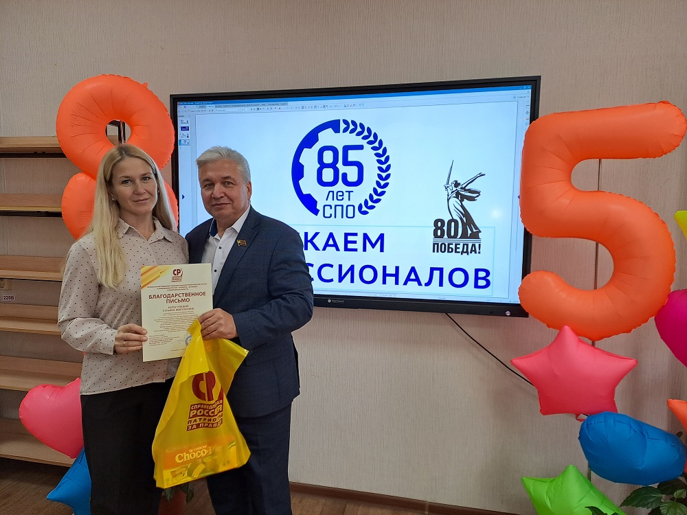 Юрий Скворцов выразил признательность педагогам за их вклад в реализацию патриотических проектов, посвященных 80-летию Победы советского народа в Великой Отечественной войне и Году защитников Отечества. Патриотическое воспитание молодежи и сохранение исторической памяти являются важными аспектами деятельности среднего профессионального образования.