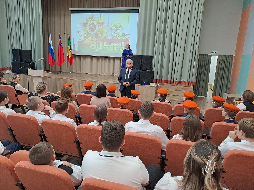 Юрий Скворцов выразил слова благодарности коллективу школы за активное участие в организации патриотических мероприятий, посвященных 80-летию Победы советского народа в Великой Отечественной войне и Году защитников Отечества. Он отметил важность сохранения исторической памяти, а также роль педагогов в патриотическом воспитании подрастающего поколения.