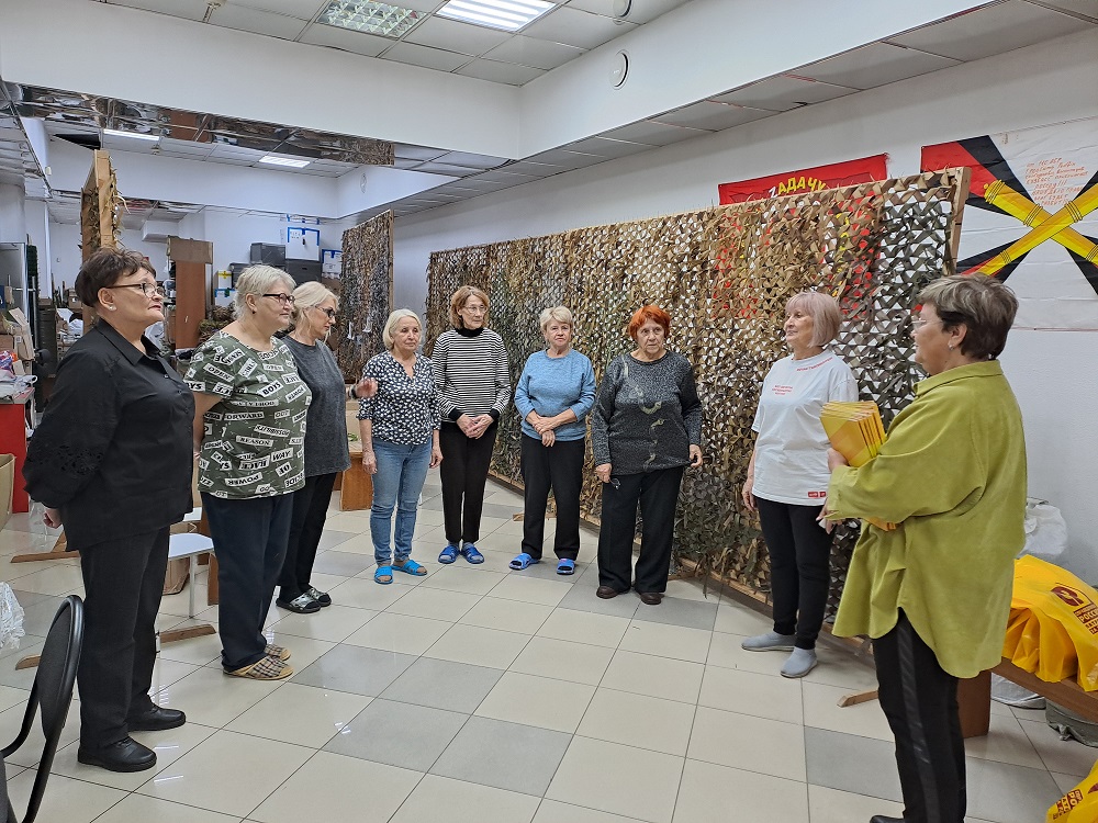 Представители регионального отделения партии СПРАВЕДЛИВАЯ РОССИЯ в Кемеровской области встретились с волонтерами группы "КуZбасс. Приближаем Победу!", которые занимаются изготовлением маскировочных сетей для участников специальной военной операции.
