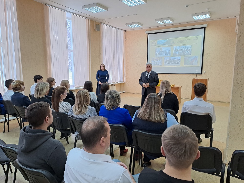 Юрий Скворцов выразил благодарность студентам и преподавателям за их активное участие в патриотических акциях, посвященных 80-летию Победы советского народа в Великой Отечественной войне и Году защитников Отечества. Он отметил значимость их вклада в сохранение исторической правды о подвиге советского народа и поддержку участников специальной военной операции.