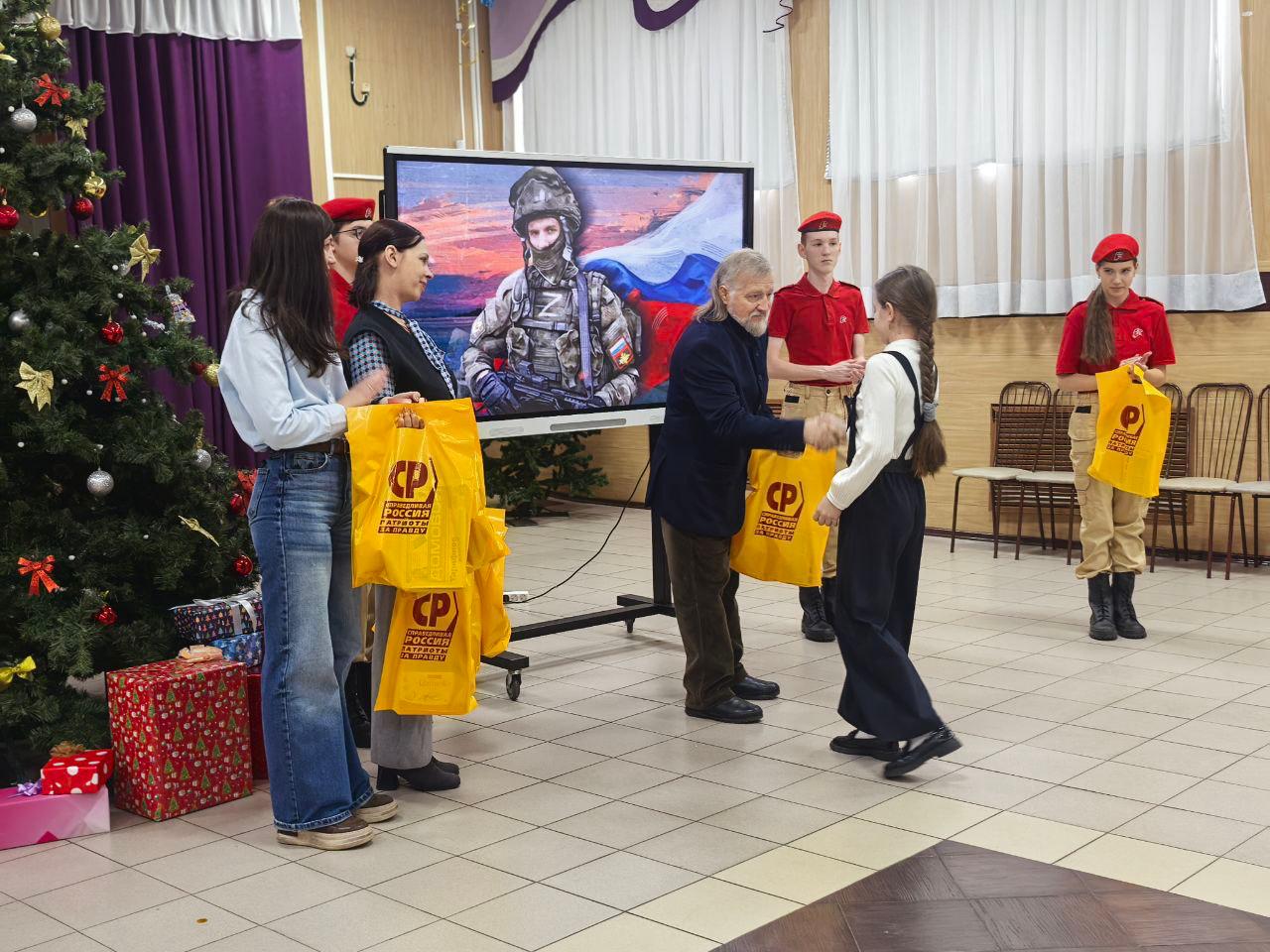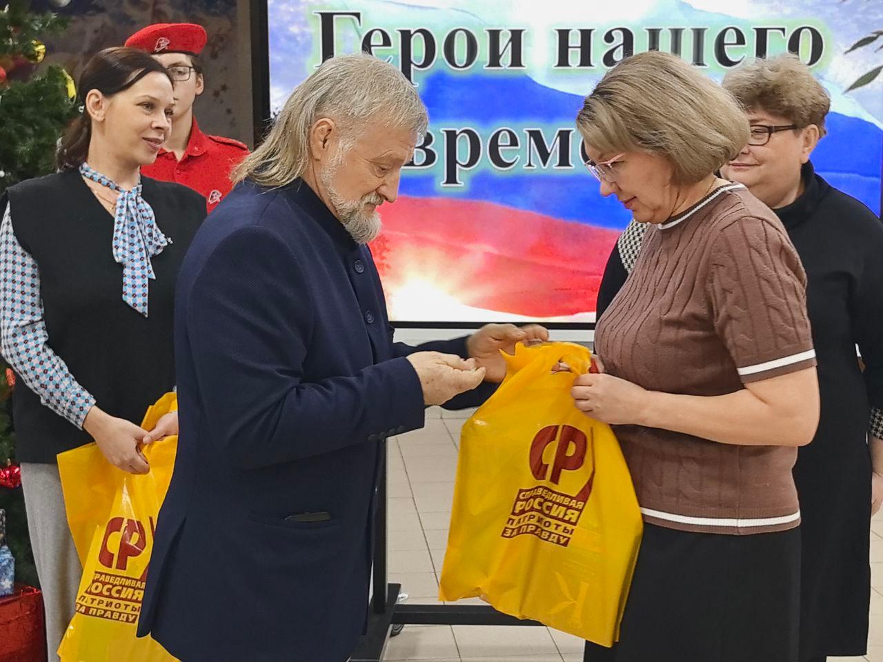 Председатель местного отделения Социалистической партии СПРАВЕДЛИВАЯ РОССИЯ в Осинниковском городском округе Владимир Оплетин и член Совете регионального отделения партии, депутат Совета народных депутатов городского округа Валерия Полынова поздравили детей из семей участников специальной военной операции, являющихся учащимися лицея № 36 города Осинники с Новым годом.
