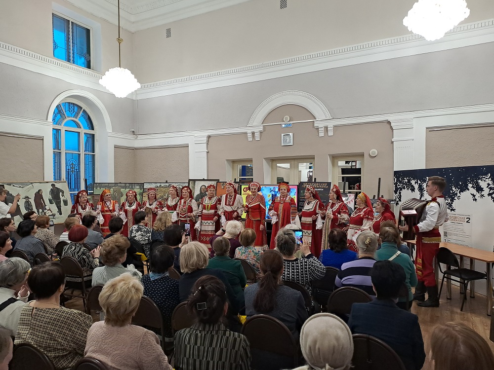 На мероприятии также звучали прекрасные песни о России и любви к Родине, исполненные народным самодеятельным коллективом хора русской песни "Славяне" под руководством Аллы Лаховской. Эти мелодии наполнили воздух праздника особым настроением и теплом.
