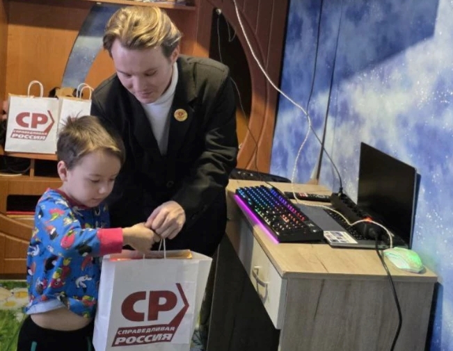 В канун Рождества председатель местного отделения Социалистической партии СПРАВЕДЛИВАЯ РОССИЯ в Заводском районе Кемеровского городского округа Николай Исаев поздравил с наступившим Новым годом и Рождеством многодетную семью в Тисульском муниципальном округе.