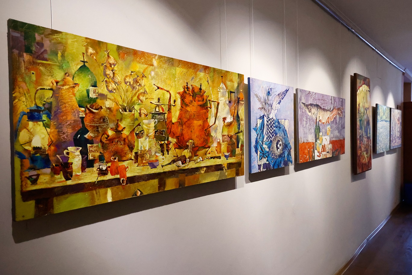 Экспозиция, насчитывающая более 200 работ, демонстрирует богатство видов, жанров, техник и манер исполнения. Однако, несмотря на это многообразие, все произведения объединяет одно – авторская фантазия, пронизывающая каждую картину, каждый скульптурный образ.