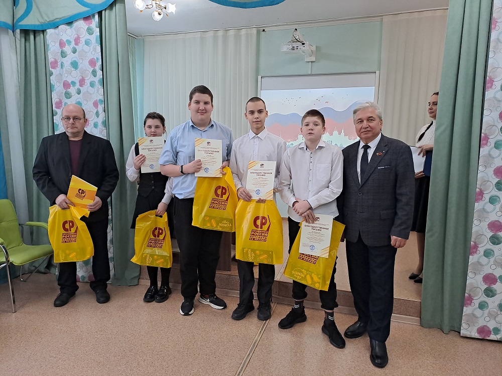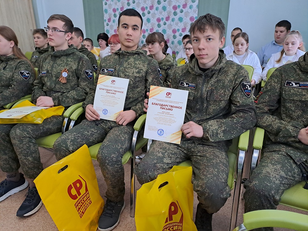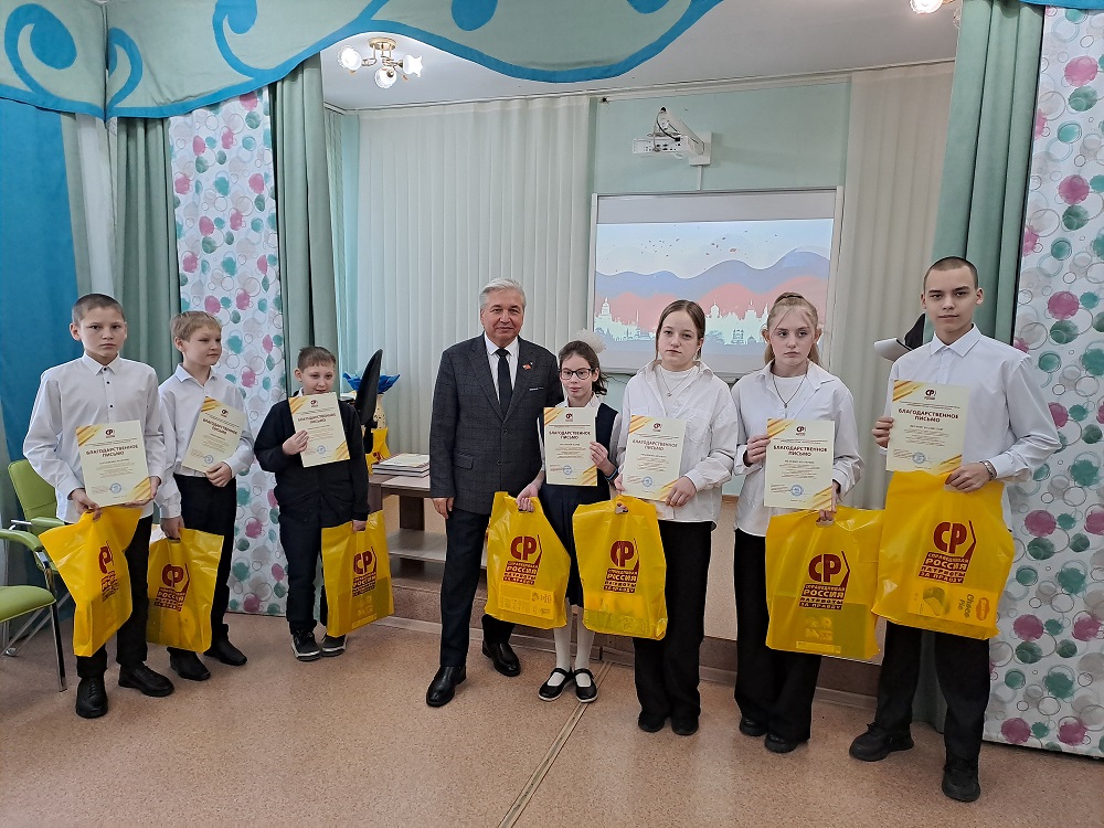 В знак благодарности школам были переданы экземпляры книги памяти "Сила духа народа-победителя. Завещание потомкам". Это издание, выпущенное к 80-летию Победы по инициативе председателя партии СПРАВЕДЛИВАЯ РОССИЯ Сергея Миронова, представляет собой ценный архив историй о героях Великой Отечественной войны. В книге собраны воспоминания фронтовиков и их близких, дополненные фотографиями и архивными материалами, которые делают рассказы о героических событиях еще более яркими и трогательными.