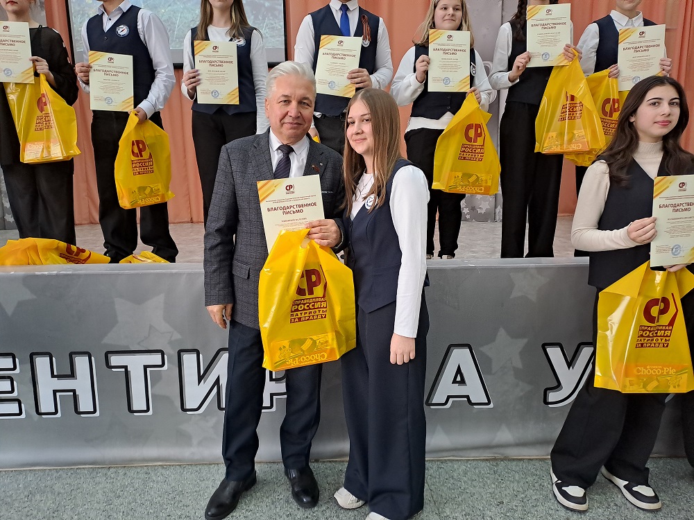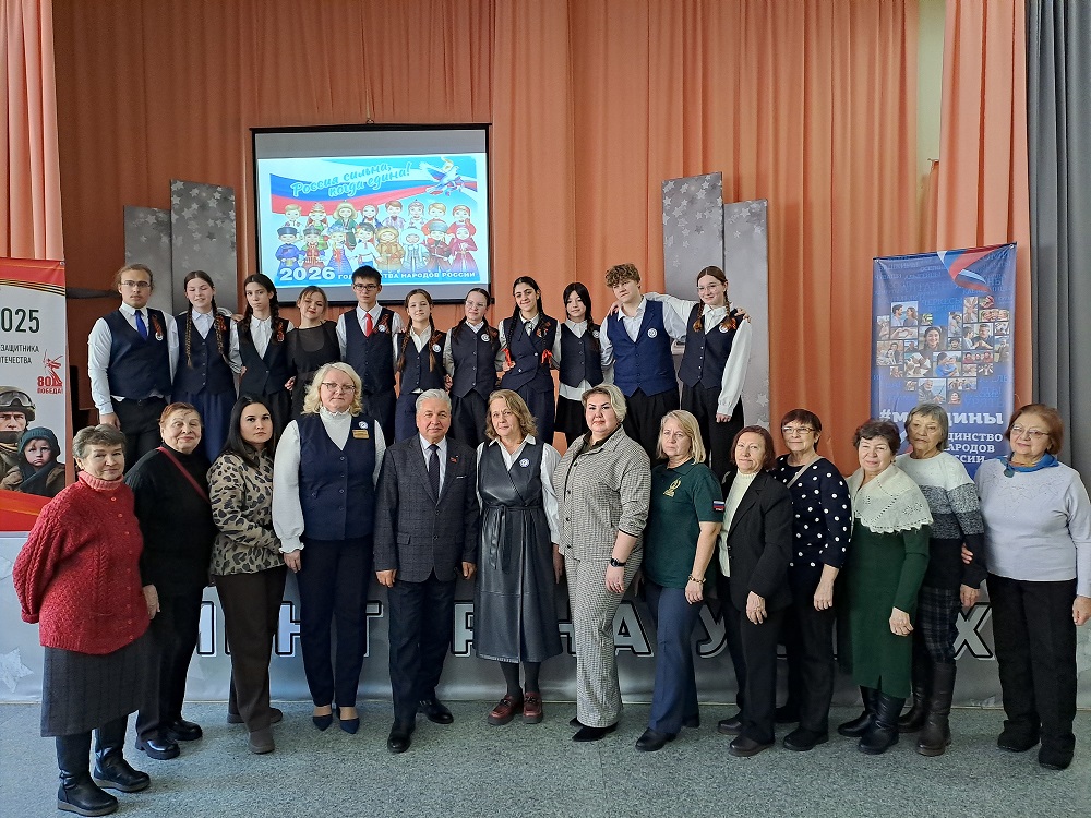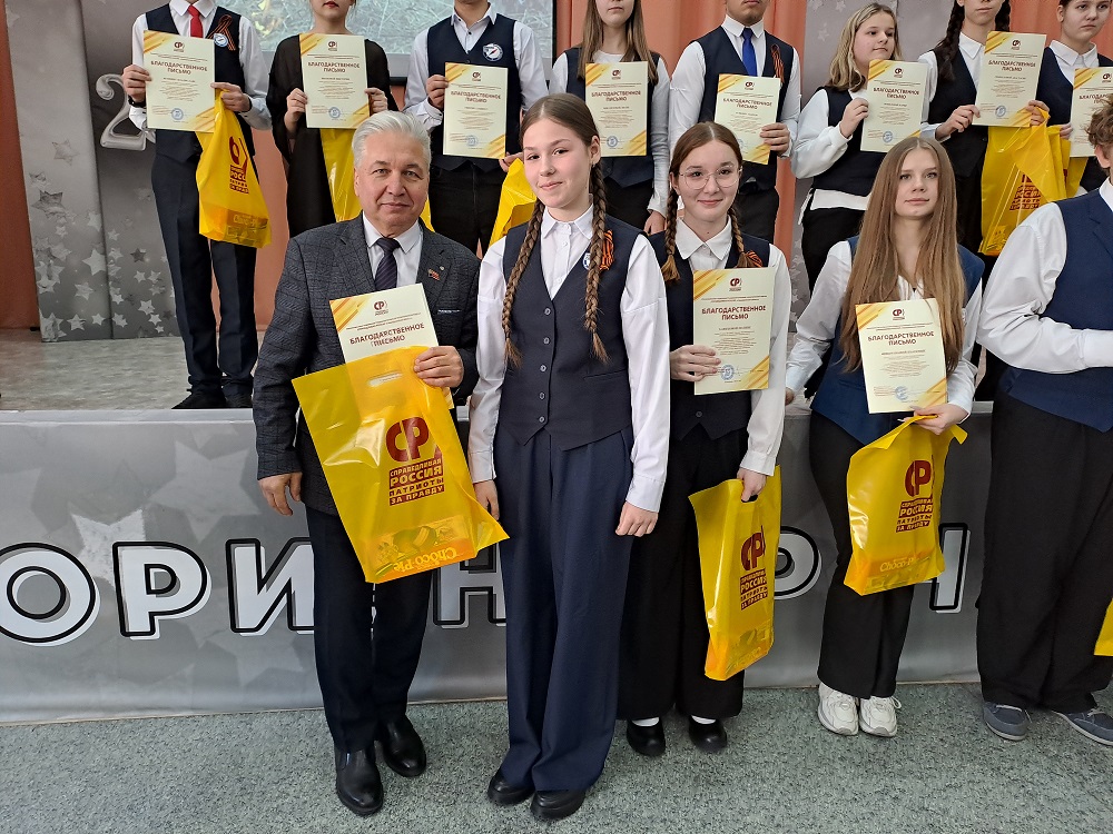 Юрий Скворцов выразил благодарность коллективу школы за активное участие в проектах, посвященных 80-летию Победы советского народа в Великой Отечественной войне и Году защитников Отечества. Он подчеркнул важность сохранения исторической памяти и правды о подвиге советского народа, особенно в современных условиях. Он особо отметил, что Великая Победа стала возможной благодаря крепкой дружбе народов СССР, и подчеркнул, что сила России заключается в единстве ее многонационального народа.
