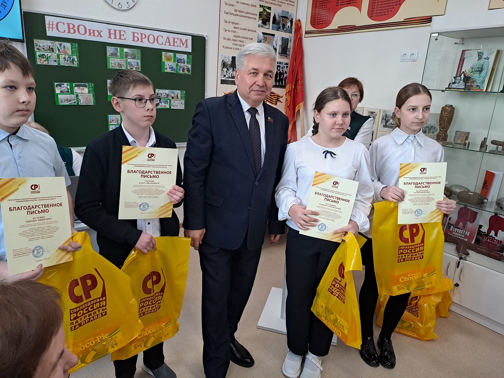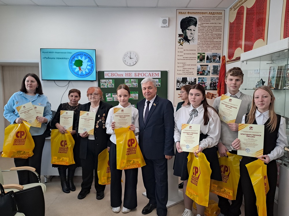 Юрий Скворцов выразил искреннюю благодарность коллективу Береговской школы за их активное участие в проектах, приуроченных к 80-летию Победы и Году защитников Отечества. Он подчеркнул исключительную важность сохранения исторической памяти и правды о подвиге советского народа, особенно в условиях современных вызовов. Депутат особо отметил, что Великая Победа стала возможной благодаря крепкой дружбе народов СССР, и подчеркнул, что сила России заключается в единстве ее многонационального народа. Он также напомнил, что 2026 год объявлен Президентом РФ Владимиром Путиным Годом единства народов России, что будет способствовать укреплению межнационального согласия, мира и взаимного уважения между народами.