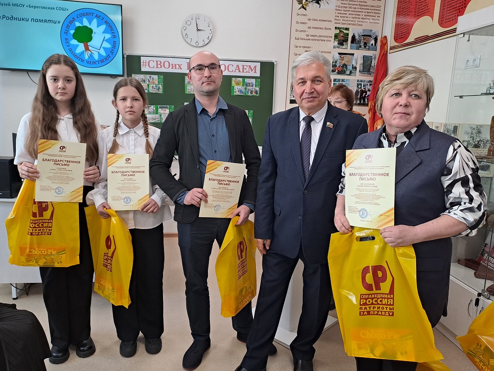 Заместитель председателя Парламента Кузбасса, председатель регионального отделения партии СПРАВЕДЛИВАЯ РОССИЯ Юрий Скворцов провел встречу с юными хранителями истории – активистами школьных музеев. Мероприятие состоялось в деревне Береговая Кемеровского муниципального округа, на гостеприимной площадке школьного музея "Родники памяти" Береговской средней общеобразовательной школы имени Героя Советского Союза И.Ф. Абдулова.