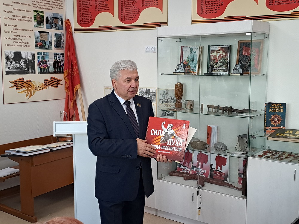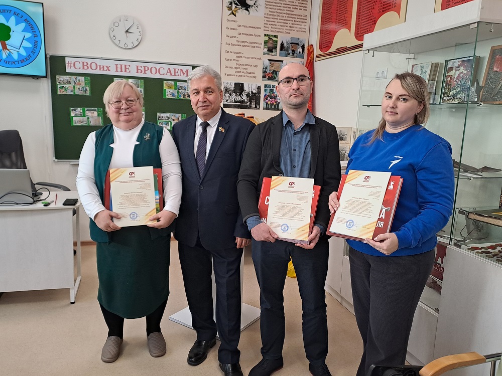 В завершение встречи, в знак благодарности за их труд и вклад в сохранение истории, школам было передано по одному экземпляру книги памяти "Сила духа народа-победителя. Завещание потомкам". Это уникальное издание, выпущенное к 80-летию Победы по инициативе председателя партии СПРАВЕДЛИВАЯ РОССИЯ Сергея Миронова, представляет собой ценный архив историй о героях Великой Отечественной войны. В книге собраны воспоминания фронтовиков и их близких, дополненные фотографиями и архивными материалами, которые делают рассказы о героических событиях еще более яркими и трогательными, передавая эстафету памяти будущим поколениям.
