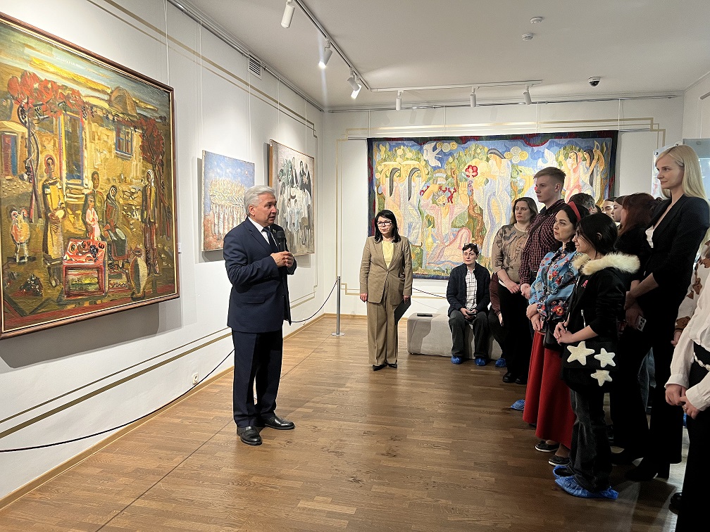 Заместитель председателя Парламента Кузбасса, председатель регионального отделения партии СПРАВЕДЛИВАЯ РОССИЯ посетил открытие выставки "Традиции трапезы" в Музее изобразительных искусств Кузбасса. Мероприятие началось с тёплого приёма: гостей угощали ароматными блинами, сибирским шоколадом, а также традиционными телеутскими калачами и хворостом, сопровождая всё это народными песнями и танцами.