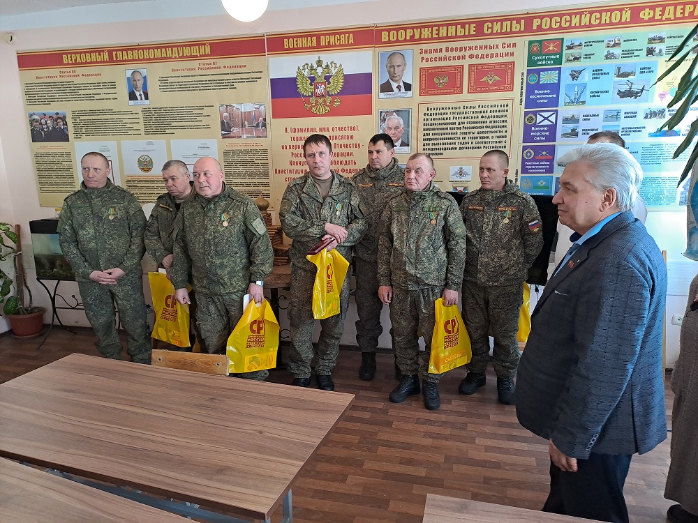 Заместитель председателя Парламента Кузбасса, председатель регионального отделения партии СПРАВЕДЛИВАЯ РОССИЯ Юрий Скворцов провёл встречу с военнослужащими 120-й гвардейской артиллерийской бригады и 74-й отдельной гвардейской мотострелковой бригады, которые задействованы в доставке гуманитарной помощи в зону специальной военной операции.