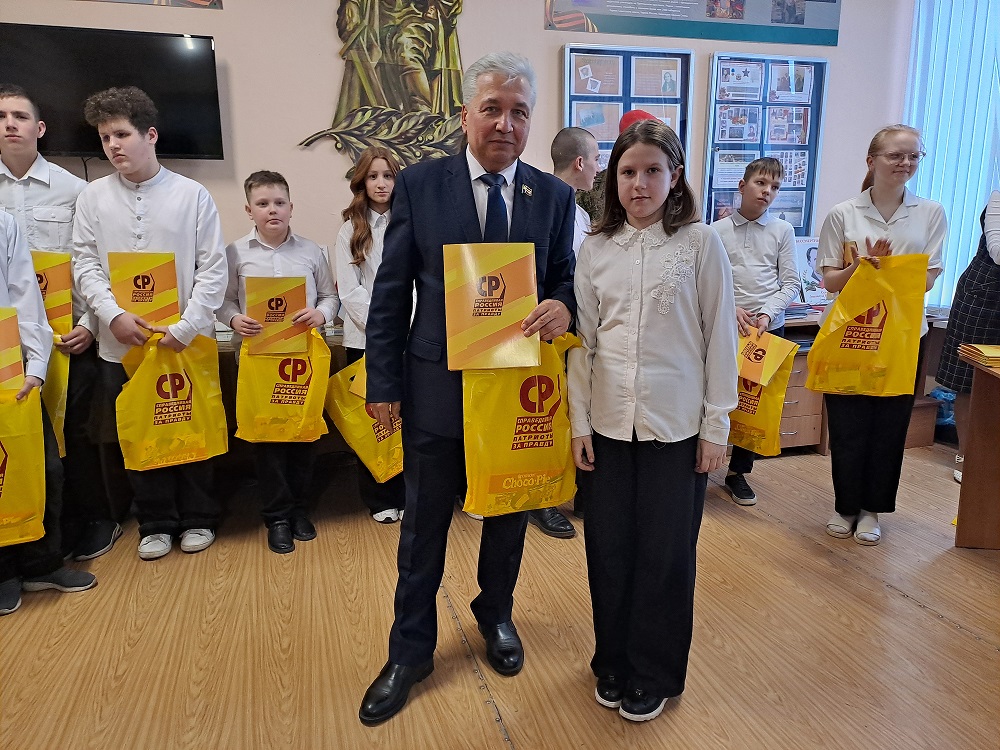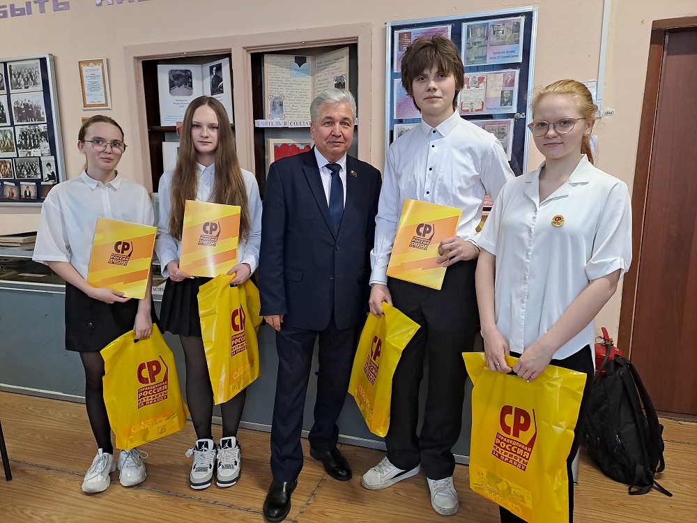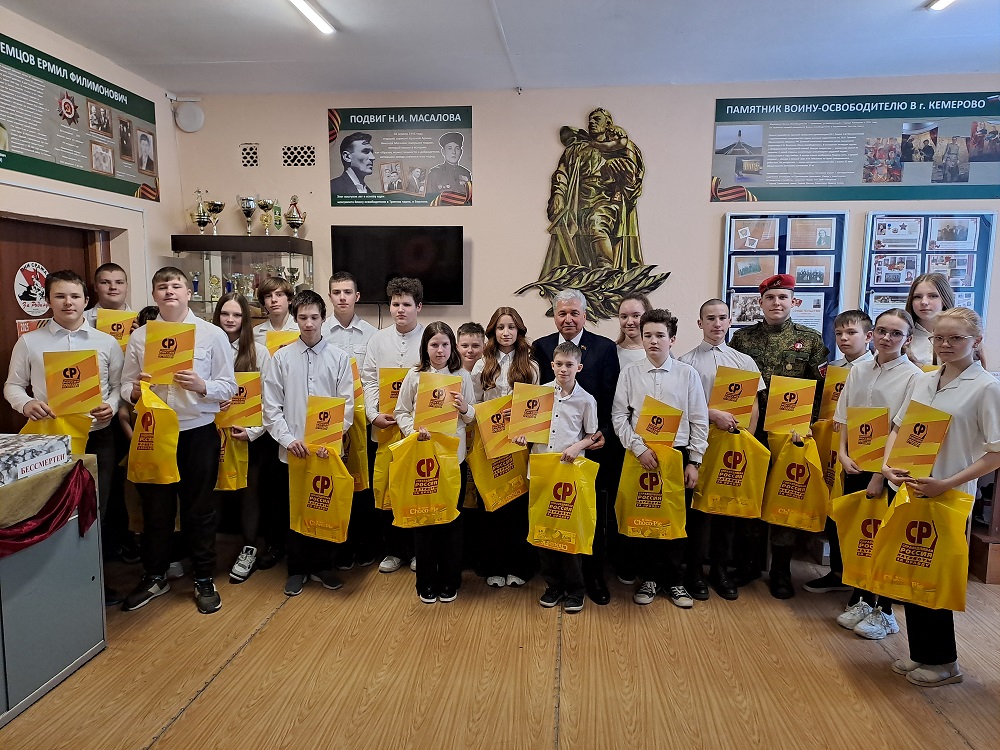 Заместитель председателя Парламента Кузбасса и руководитель регионального отделения партии СПРАВЕДЛИВАЯ РОССИЯ Юрий Скворцов провел встречу с учениками и педагогами средней общеобразовательной школы № 16 имени Романа Георгиевича Цецульникова в Кемерово. Встреча была посвящена актуальным вопросам сохранения исторической памяти и укрепления единства народов.