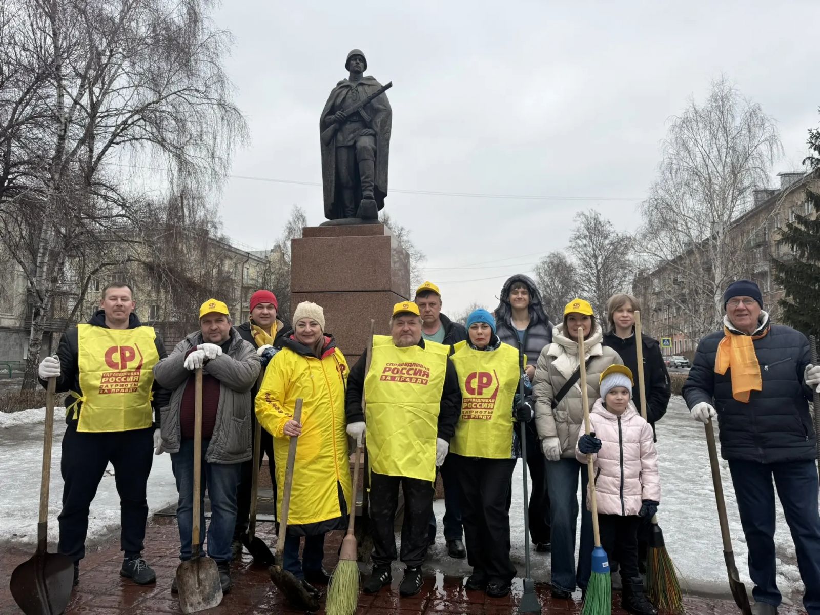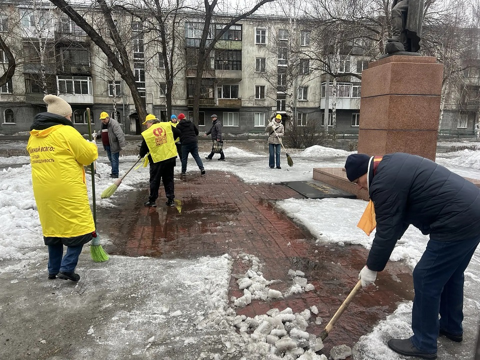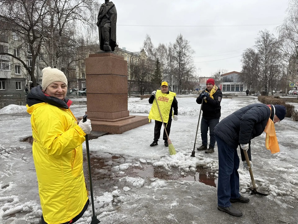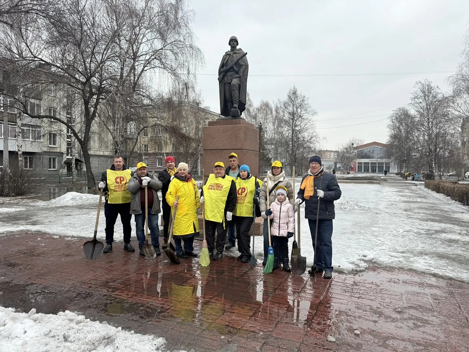 Вооружившись лопатами, участники субботника очистили территорию от слежавшегося снега и отвели талую воду от постамента. Работа шла легко и с энтузиазмом, а после уборки памятник засиял по-новому — чистый, ухоженный и торжественный.