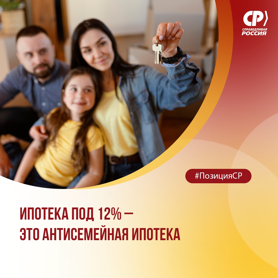 Юрий Скворцов: "СПРАВЕДЛИВАЯ РОССИЯ считает, что ипотека под 12% – это антисемейная ипотека" / Минфин РФ анонсировал дифференцированные ставки по семейной ипотеке. Для семей с одним ребенком она может подорожать вдвое – с 6 до 12%. Для семей с двумя детьми ставка при этом останется прежней, с тремя – снизится до 4%. Мизерная скидка в 2% для многодетных не поможет. По оценкам экспертов, подорожание ипотеки коснется почти трёх миллионов семей с одним ребенком, переплата по кредиту для них вырастет в 2,5 раза. Это приведет к тому, что молодые семьи будут откладывать даже рождение первенцев.